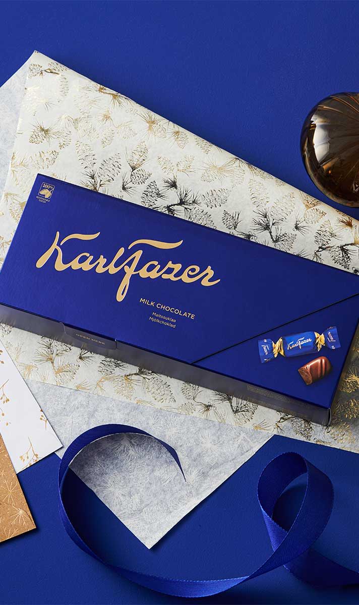Karl Fazer ミルクチョコレートは、フィンランドのアイコン的存在です。文化遺産の一つとも言えるでしょう。その濃厚でなめらかなくちどけゆえに選ばれてきたチョコレート、Karl Fazerもしくは「Fazer Blue(ファッツェル・ブルー)」は、多くのフィンランド人にとって、共に成長してきたチョコレートなのです。