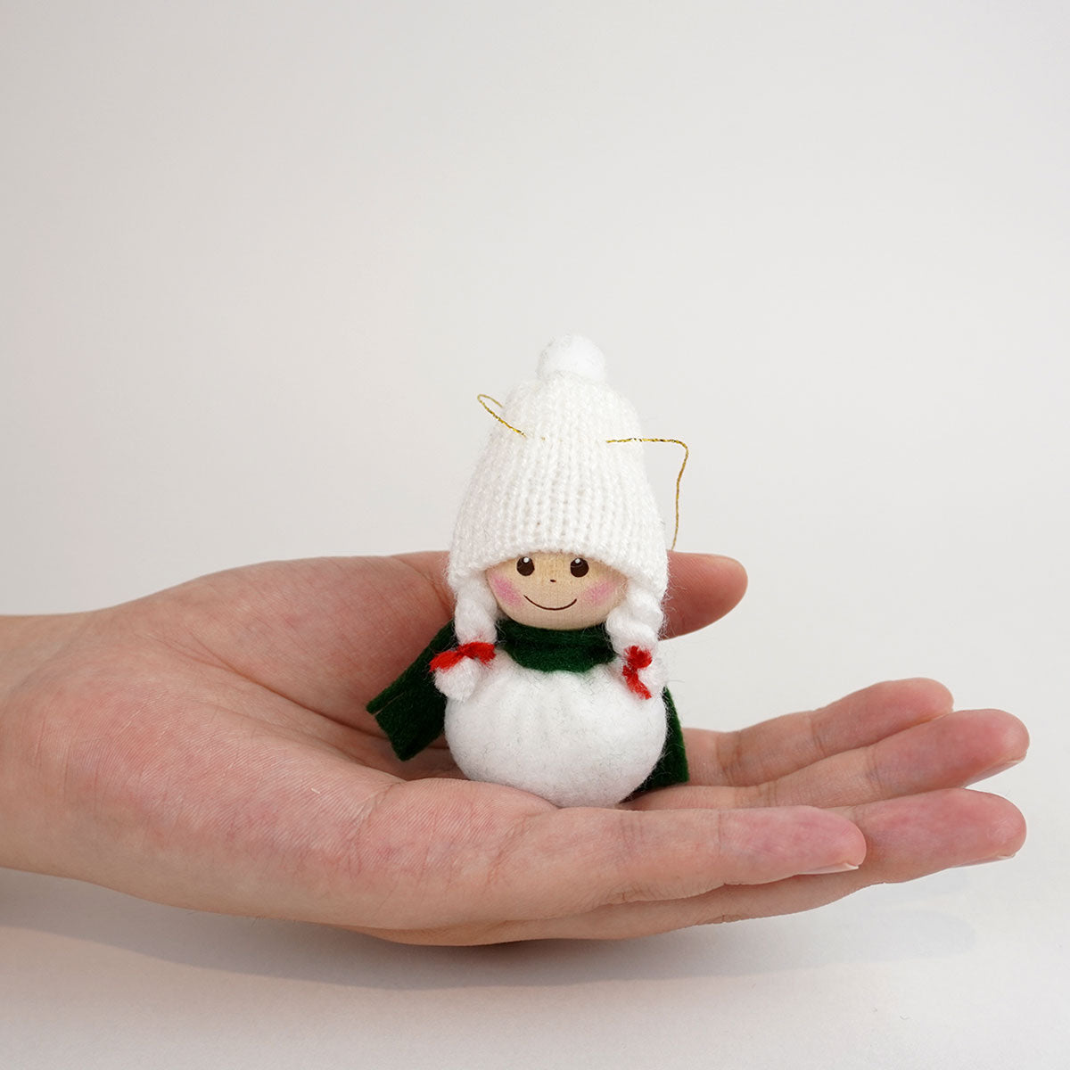 糸でつりさげる、ころんとしたオーナメントたち。サンタさん、トナカイ、ヒツジ、マフラーをした男の子、マフラーをした女の子、とみんなそろえたくなっちゃいます。ツリーに飾るのはもちろん、スワッグに潜ませたり、ドアノブや窓辺にさげて「こんなところにも!」とクリスマスが近づくのを楽しむのも素敵ですよ。