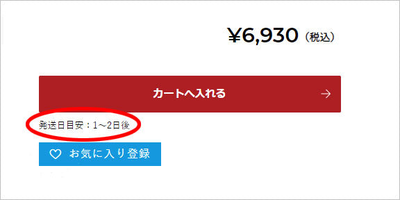 発送日時期の目安は、各商品ページの「カートへ入れる」ボタンの下でご案内しています。